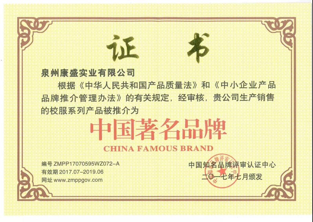 中國知名品牌評審認證中心推薦為“中國著名品牌”